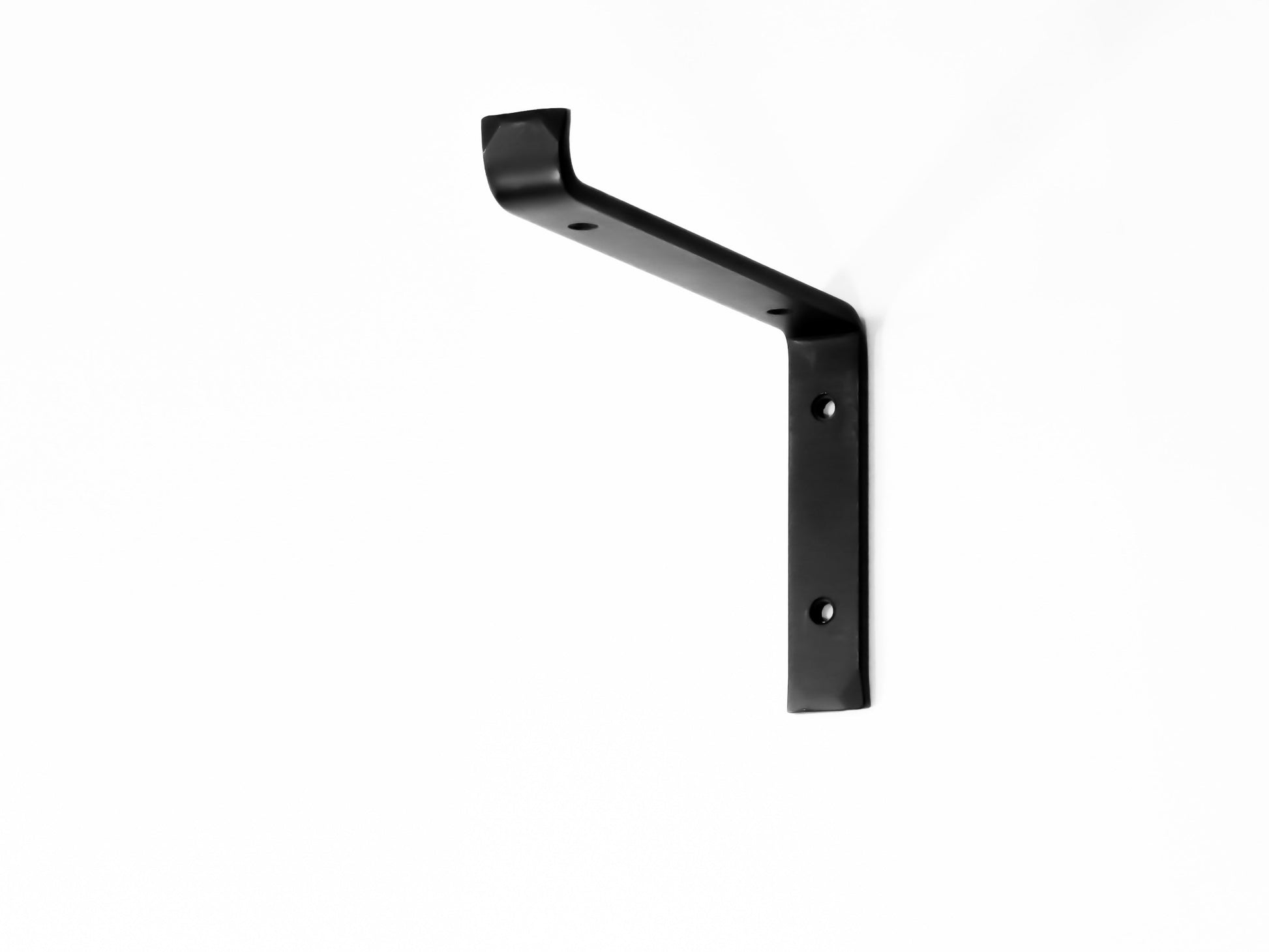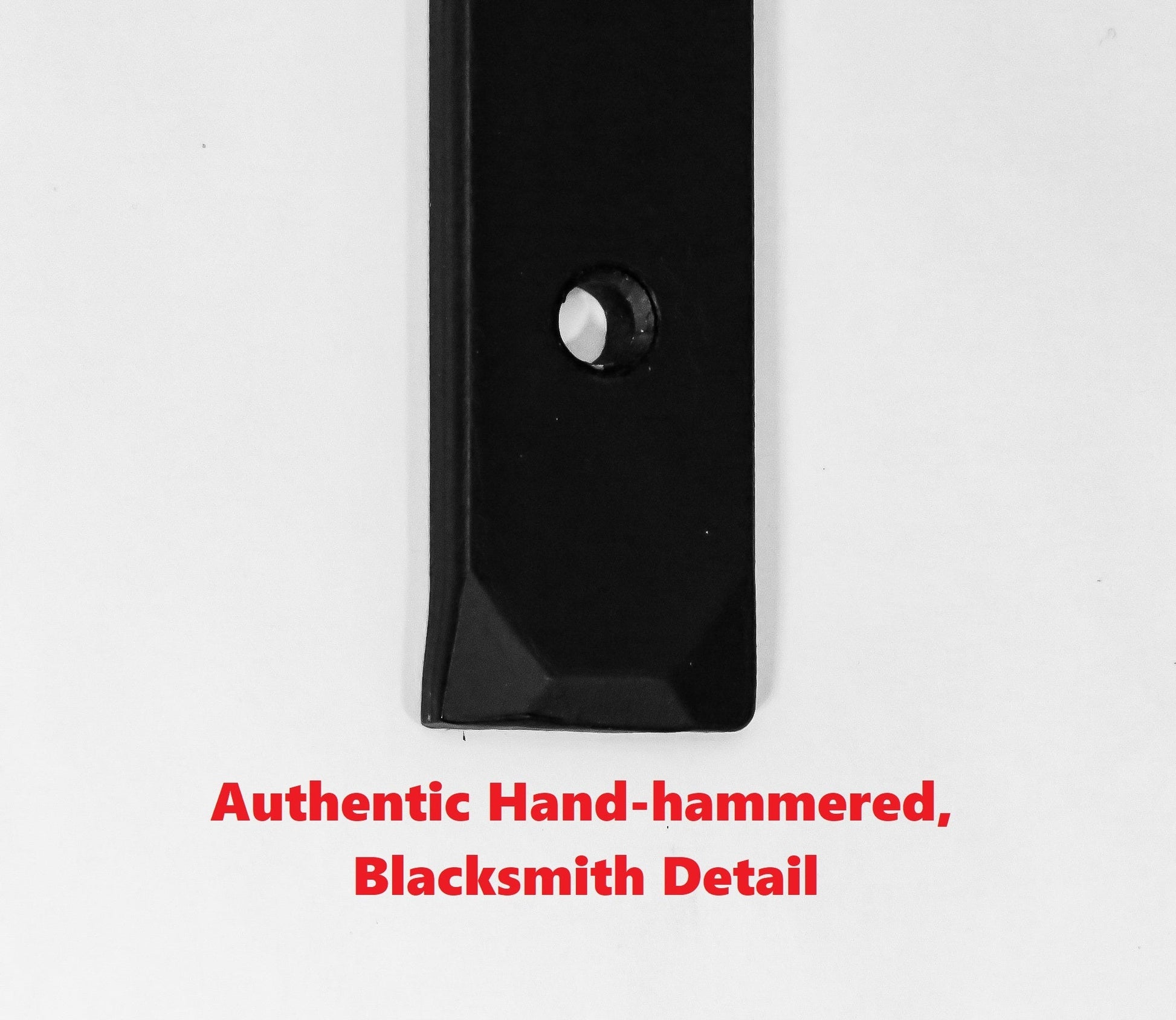 Ausable brackets are made from heavy 1/4" (.250") thick x 1" wide mild steel flat stock. Comes with pre-drilled and beveled screw holes. Generally two screw holes for shelf support...one screw hole for smaller sizes (under 5.5"). The support depth is measured from wall to out extent of support arm. Forge-fired textured and wire-brushed for that ages old appearance (see "unfinished" close-up photo for appearance)! Three-way beveled bracket ends. High quality, American forging.