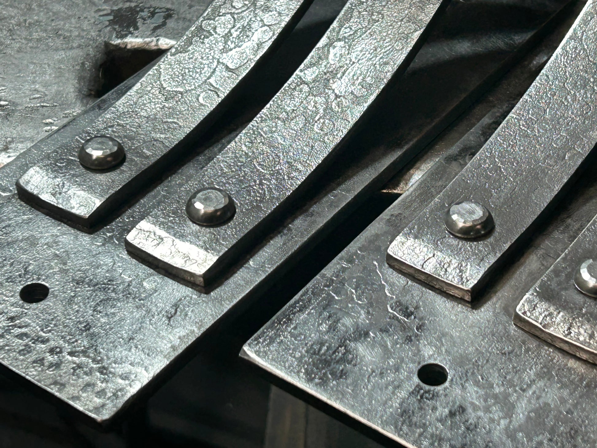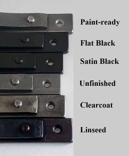 - Satin Black: An opaque paint finish that highlights the evidence of the blacksmithing process. This finish is highly durable. Can be used as an interior or exterior finish.