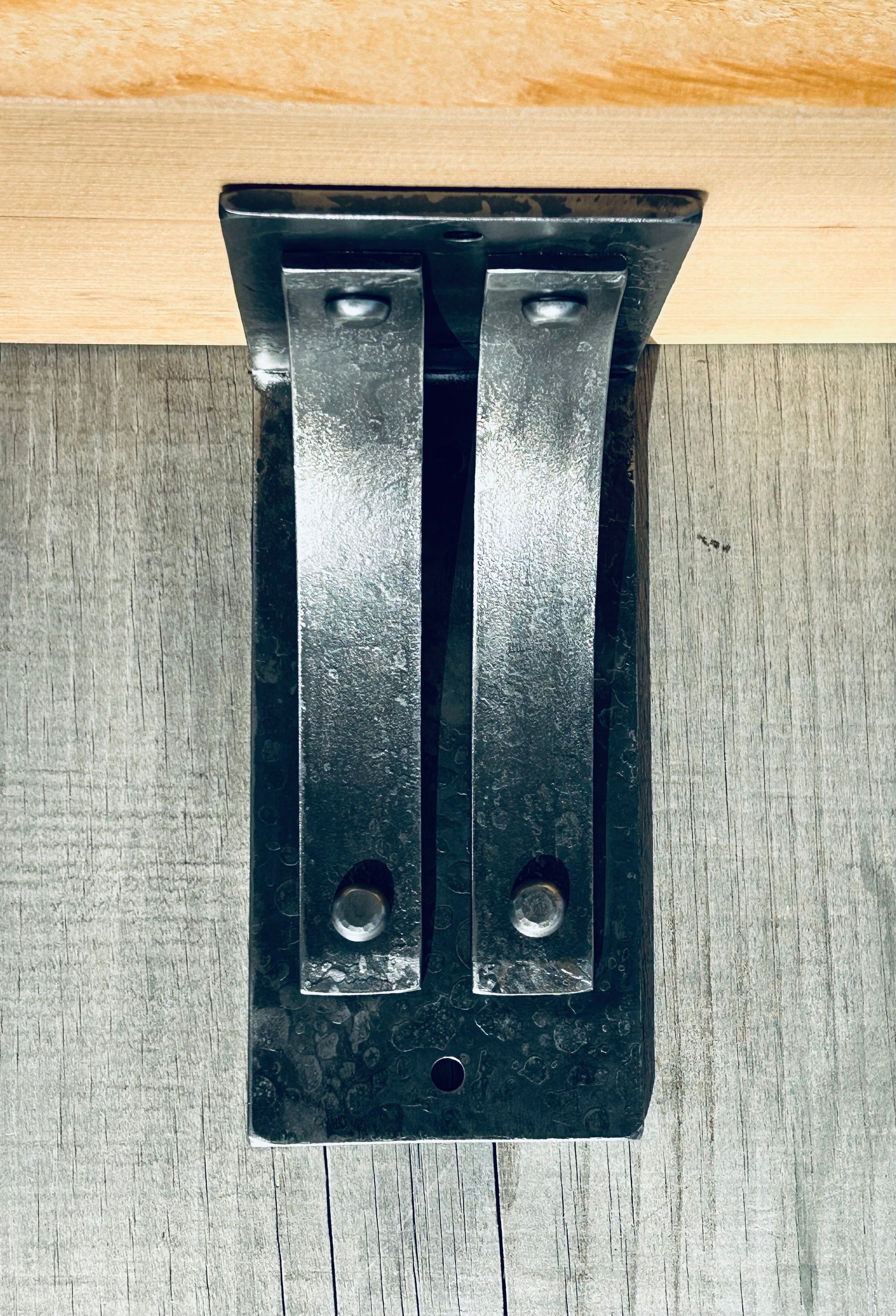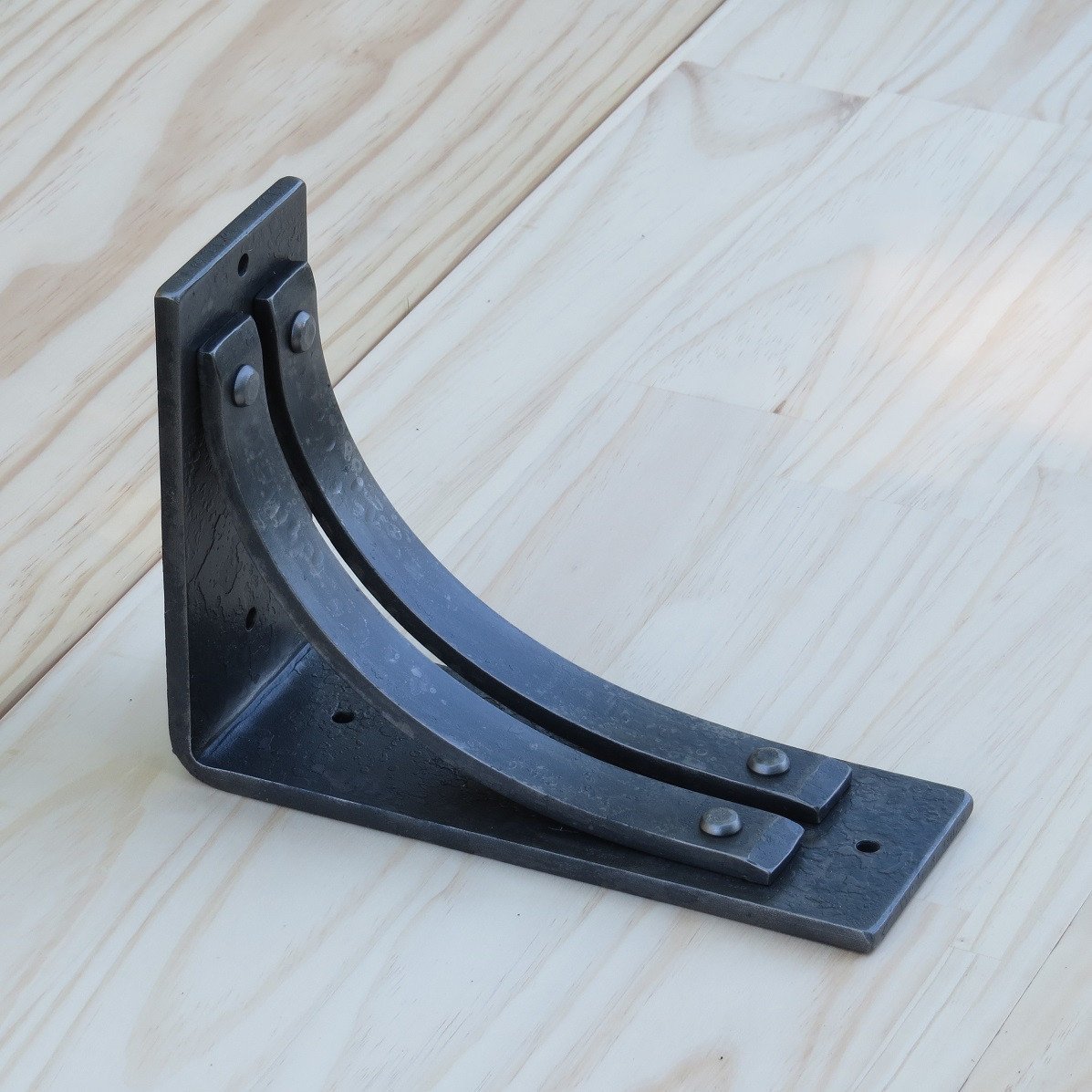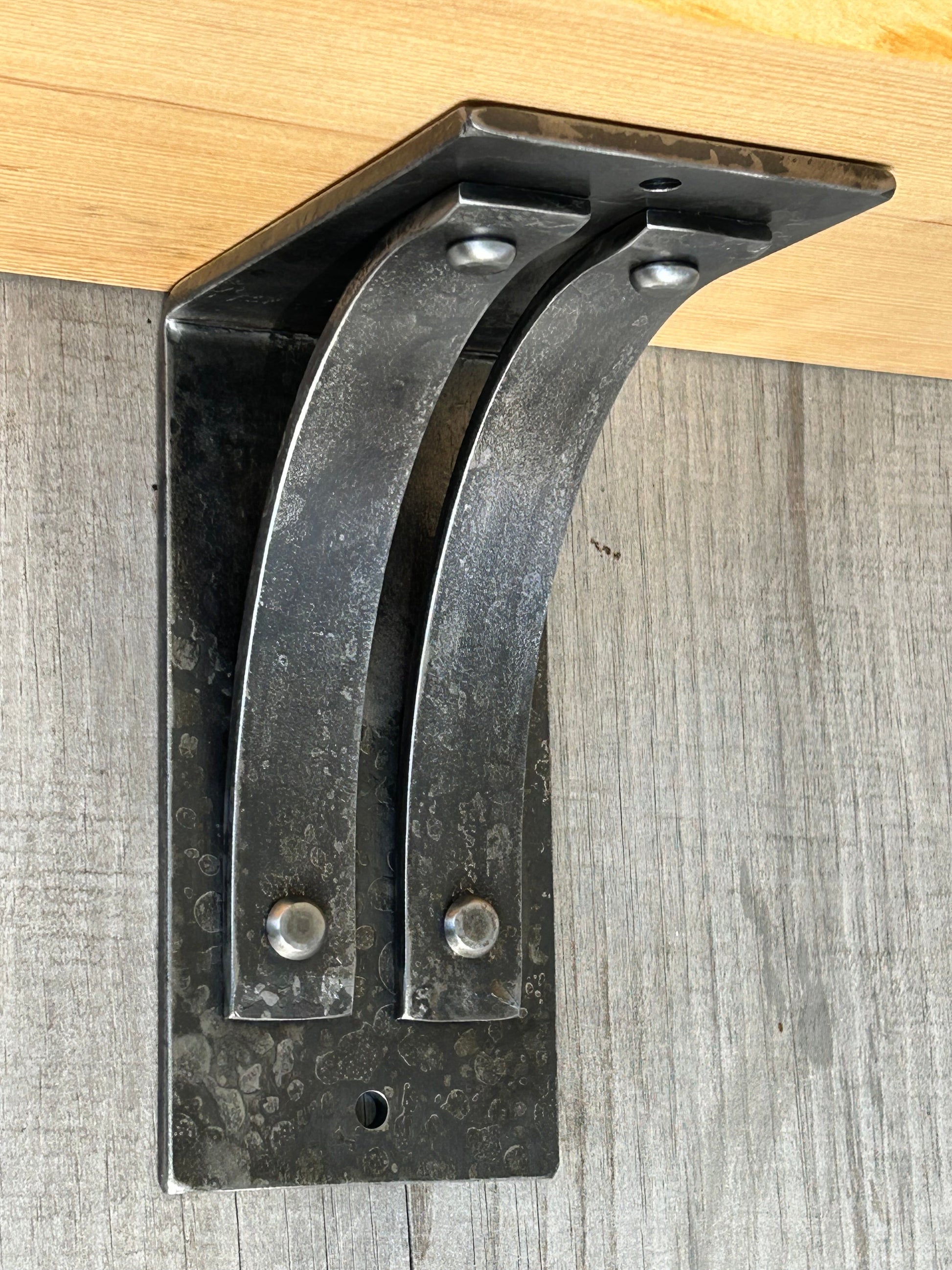 Fine Print: We go to great lengths to deliver a consistent, precise product. However, minor measurement differences can be expected as each bracket is made by hand, one at a time. Hammer and anvil marks may be evident and are a normal, beautiful effect of the process. Unseen surfaces may have evidence of rivet and/or welding but this won't hamper the use or strength of the piece.